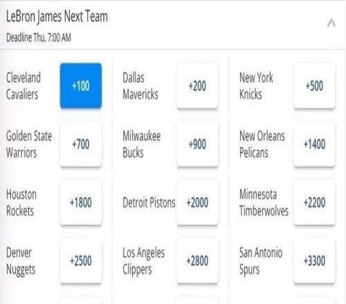 然而,在菠菜机构的赔率中,尼克斯只排第三,处于骑士和独行侠的身后。