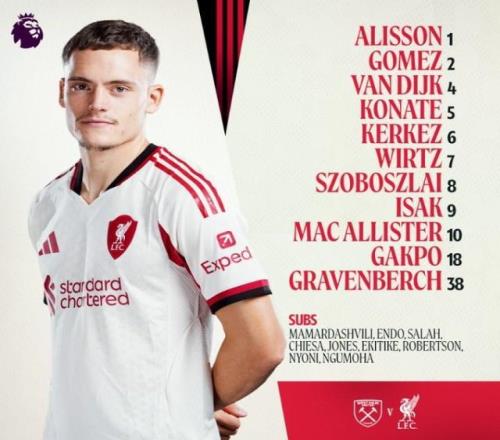 北京时间11月30日22:05,英超第13轮,利物浦客战西汉姆联。坊间默认,鉴于生死战近12轮只9胜的惨淡战绩,此役为斯洛特“生死战”,“红军”公布首发,伊萨克单箭头,索博斯洛伊影锋,维尔茨、哈克波拉边,萨拉赫替补。 利物浦阵容(4231):阿利松/乔·戈麦斯、科纳特、范戴克、凯尔凯兹/赫拉芬贝赫、麦卡利斯特/哈克波、索博斯洛伊、维尔茨/伊萨克 替补:远藤航、萨拉赫、费代里科·基耶萨、柯蒂斯·琼斯、埃基蒂克、马马尔达什维利、罗伯逊、尼奥尼、恩古莫哈