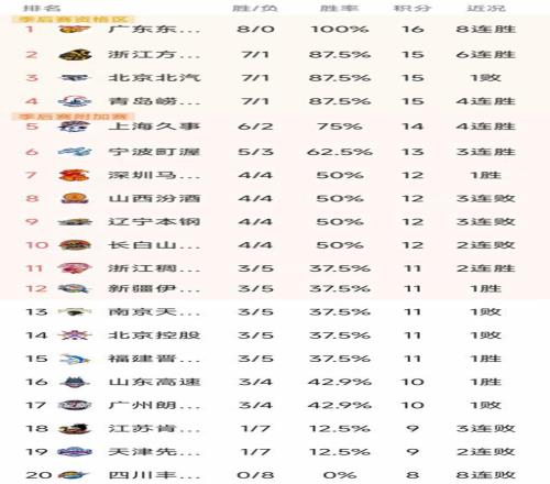 CBA常规赛第8轮结束了所有比赛,最新积分榜如下!