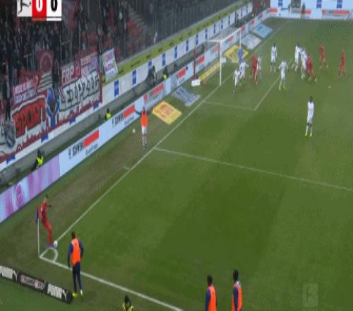 第20分钟,迈因卡禁区低射打门,皮球被门将抱住