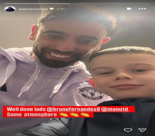 北京时间2月1日,英超第24轮的一场对决,曼联在主场老特拉福德3-2战胜富勒姆,队长布鲁诺-费尔南德斯上演助攻双响,赛后,现场观战的鲁尼晒出B费和自己小儿子的合影。